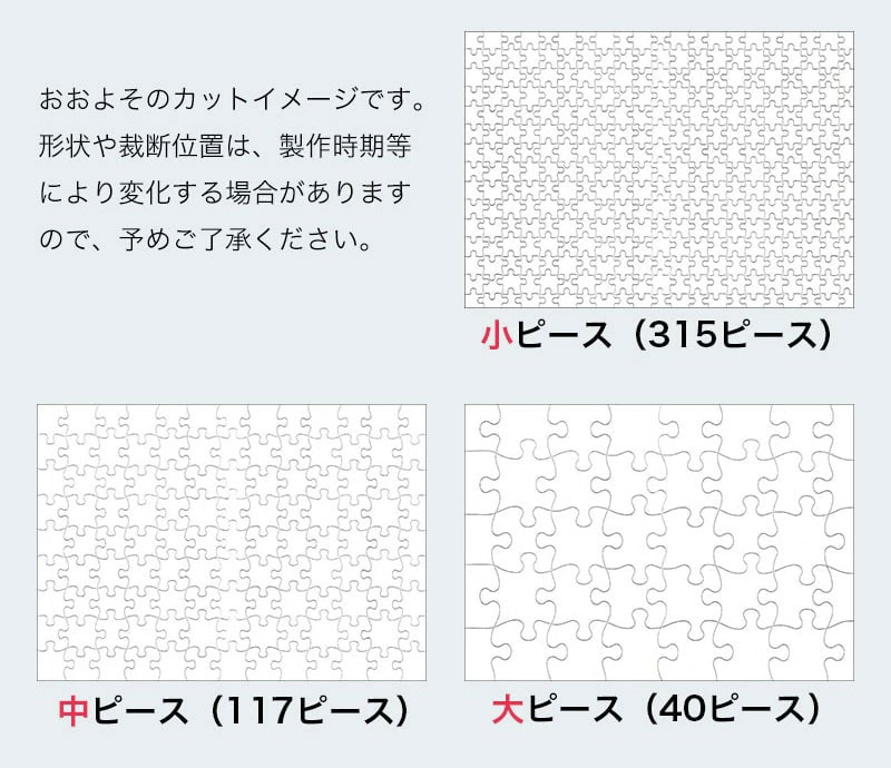 「こだわりのパズル品質」と、種類豊富な「パズル専用オプション品」、「選べるパズルサイズ」です。